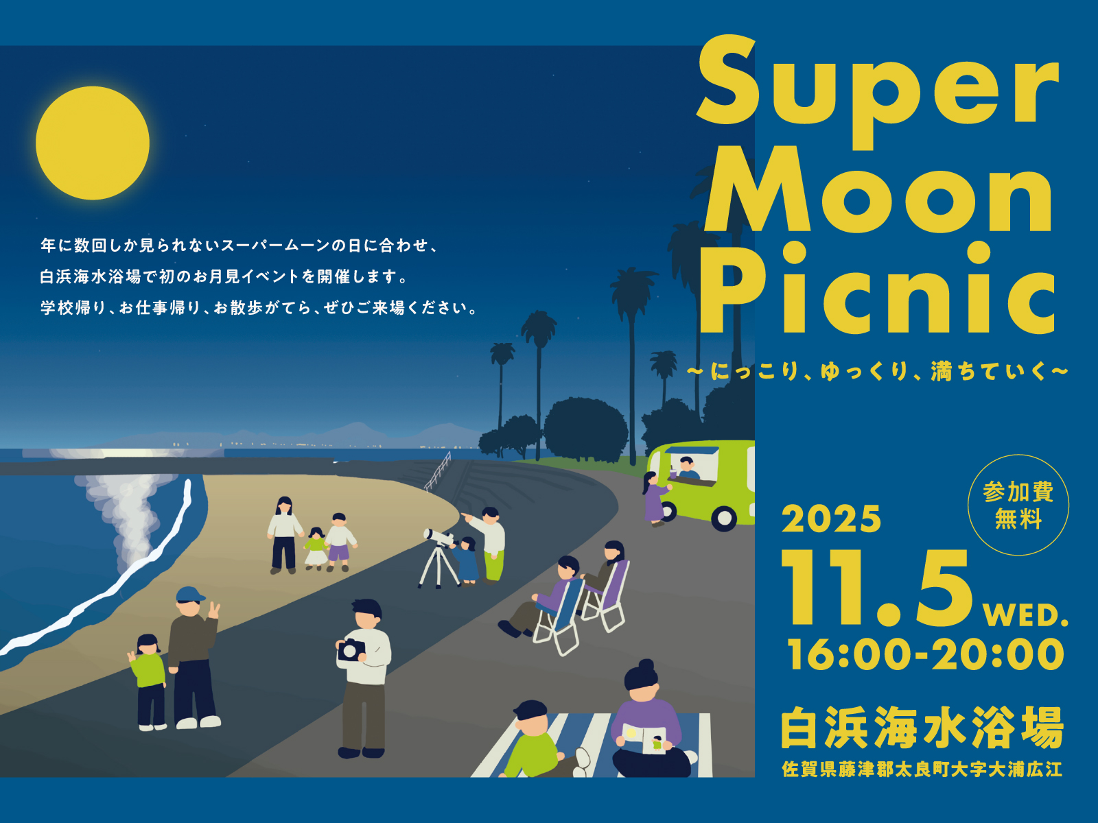 【開催レポート】白浜海水浴場トライアルイベント Super Moon Picnic ~にっこり、ゆっくり、満ちていく~
