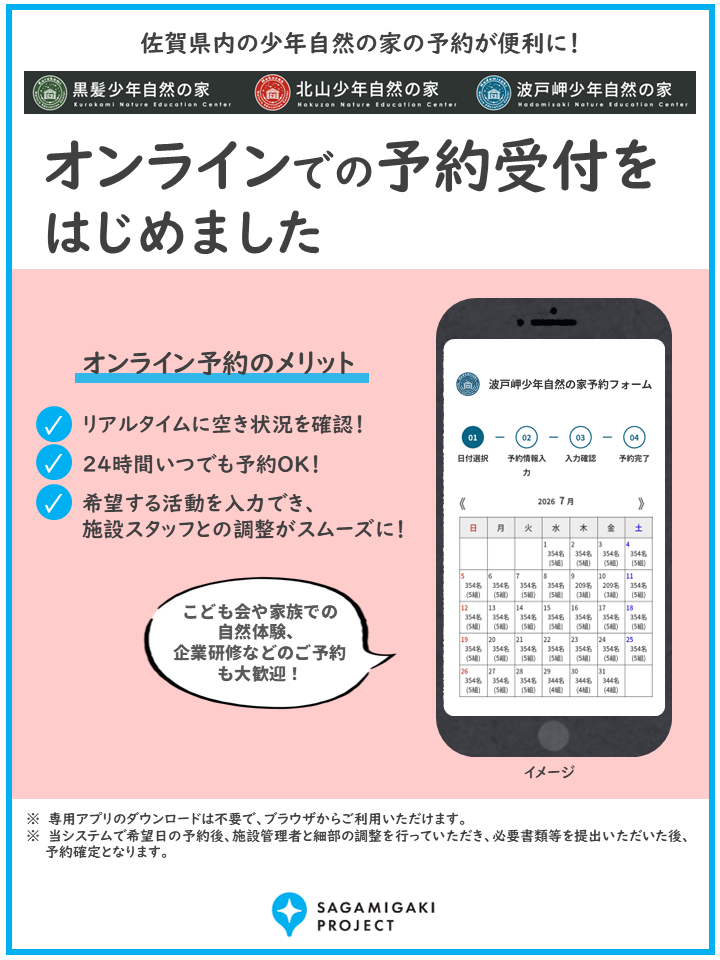 少年自然の家のオンライン予約システムの運用を始めました
